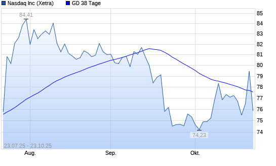 Mit dem Rücksetzer auf 75,31 EUR hat die Nasdaq Inc.-Aktie am 22.10.2025 die 38-Tage-Linie nach unten gekreuzt.