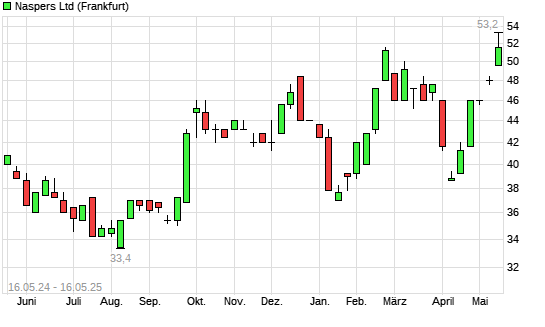 Mit dem Anstieg auf 266,00 EUR hat die Naspers-Aktie (ISIN ZAE000325783) am 15.05.2025 ein neues All-Time-High erreicht und damit den Kurs vom 14.05.2025 eingestellt.