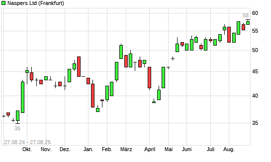 Mit dem Anstieg auf 290,00 EUR hat die Naspers-Aktie (ISIN ZAE000325783) am 26.08.2025 ein neues All-Time-High erreicht und damit den Kurs vom 15.08.2025 eingestellt.