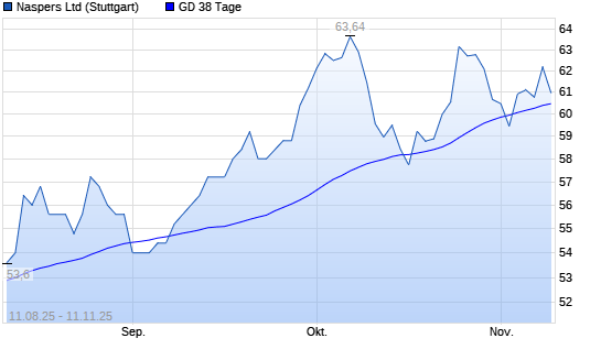 Mit dem Anstieg auf 61,93 EUR hat die Naspers-Aktie am 10.11.2025 die 38-Tage-Linie nach oben gekreuzt.