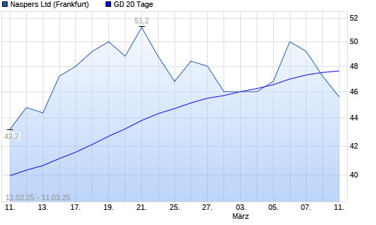 Mit dem Rücksetzer auf 236,00 EUR hat die Naspers-Aktie am 10.03.2025 die 20-Tage-Linie nach unten gekreuzt.