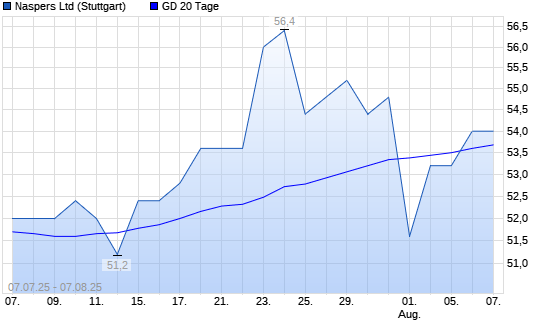 Mit dem Rücksetzer auf 268,00 EUR hat die Naspers-Aktie am 06.08.2025 die 20-Tage-Linie nach unten gekreuzt.