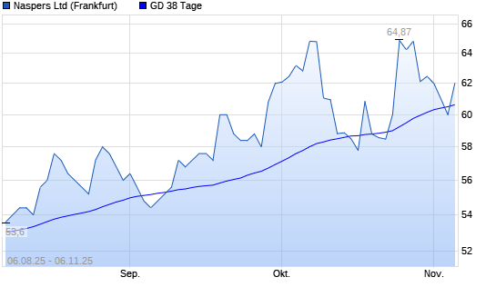 Mit dem Rücksetzer auf 60,00 EUR hat die Naspers-Aktie am 05.11.2025 die 38-Tage-Linie nach unten gekreuzt.