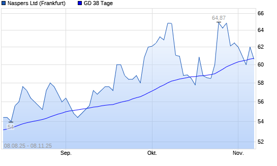 Mit dem Rücksetzer auf 60,63 EUR hat die Naspers-Aktie am 07.11.2025 die 38-Tage-Linie nach unten gekreuzt.