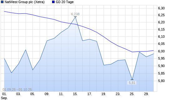 Mit dem Rücksetzer auf 6,00 EUR hat die NatWest Group-Aktie am 30.09.2025 die 20-Tage-Linie nach unten gekreuzt.