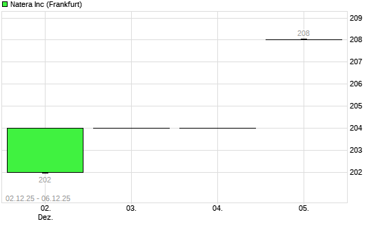 Mit dem Anstieg auf 208,00 EUR hat die Natera-Aktie (ISIN US6323071042) am 05.12.2025 ein neues All-Time-High erreicht und damit den Kurs vom 04.12.2025 eingestellt.