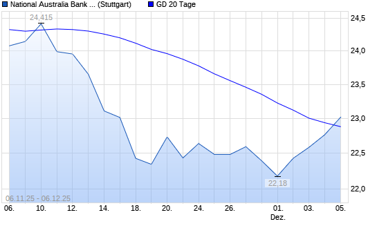 Mit dem Anstieg auf 22,77 EUR hat die National Australia Bank-Aktie am 05.12.2025 die 20-Tage-Linie nach oben gekreuzt.