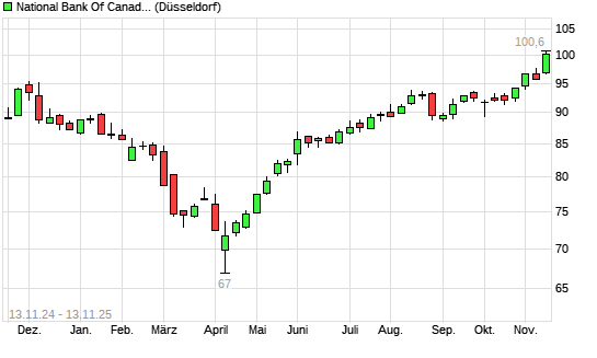 Mit dem Anstieg auf 99,14 EUR hat die National Bank Of Canada-Aktie (ISIN CA6330671034) am 12.11.2025 ein neues All-Time-High erreicht und damit den Kurs vom 11.11.2025 eingestellt.
