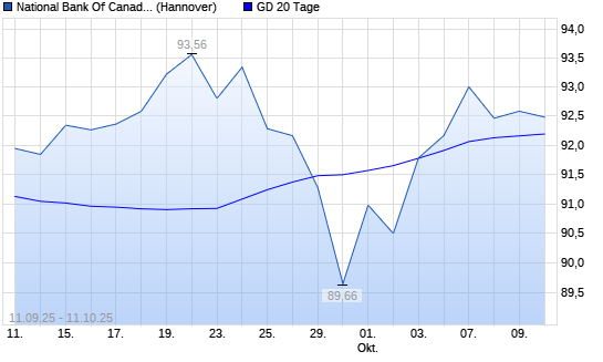 Mit dem Anstieg auf 92,60 EUR hat die National Bank Of Canada-Aktie am 10.10.2025 die 20-Tage-Linie nach oben gekreuzt.