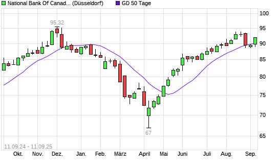 Mit dem Anstieg auf 90,78 EUR hat die National Bank Of Canada-Aktie am 10.09.2025 die 50-Tage-Linie nach oben gekreuzt.