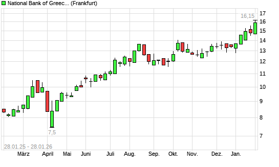 Mit dem Anstieg auf 16,01 EUR hat die National Bank Of Greece-Aktie (ISIN GRS003003035) am 27.01.2026 ein neues 10-Jahres-Hoch erreicht und damit den Kurs vom 19.01.2026 eingestellt.