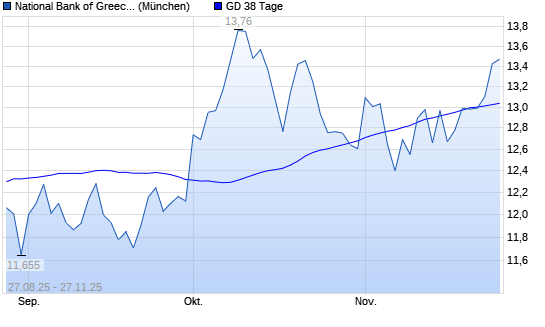 Mit dem Rücksetzer auf 13,02 EUR hat die National Bank Of Greece-Aktie am 26.11.2025 die 38-Tage-Linie nach unten gekreuzt.