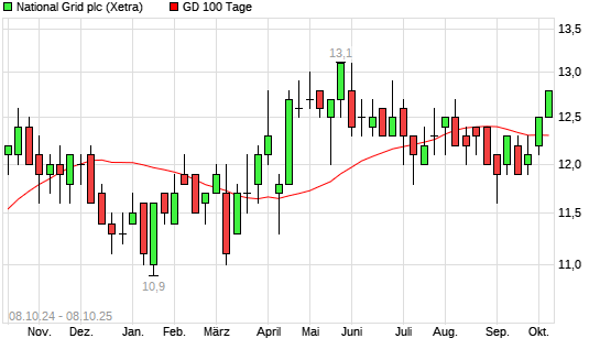 Mit dem Anstieg auf 12,50 EUR hat die National Grid-Aktie am 07.10.2025 die 100-Tage-Linie nach oben gekreuzt.
