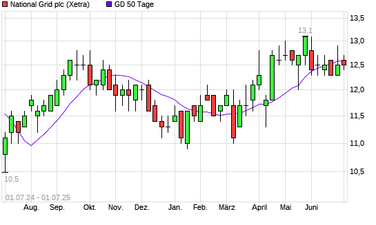 Mit dem Anstieg auf 12,80 EUR hat die National Grid-Aktie am 30.06.2025 die 50-Tage-Linie nach oben gekreuzt.