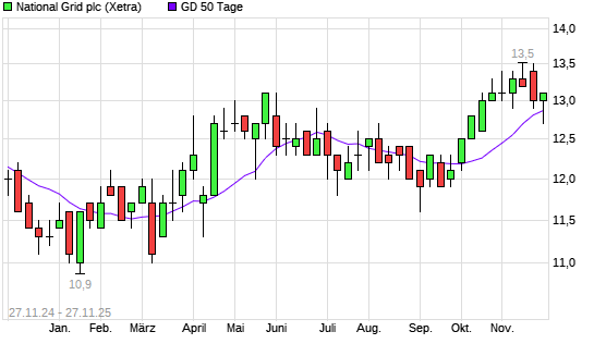 Mit dem Anstieg auf 13,00 EUR hat die National Grid-Aktie am 26.11.2025 die 50-Tage-Linie nach oben gekreuzt.