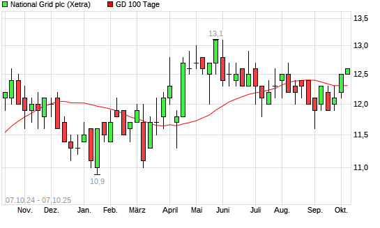 Mit dem Rücksetzer auf 12,30 EUR hat die National Grid-Aktie am 06.10.2025 die 100-Tage-Linie nach unten gekreuzt.
