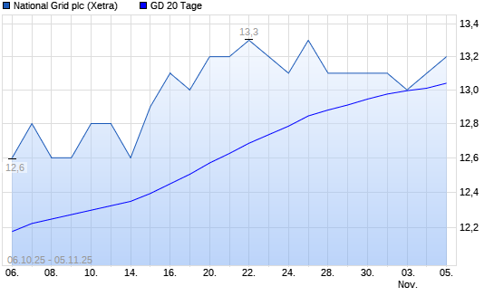 Mit dem Rücksetzer auf 12,90 EUR hat die National Grid-Aktie am 04.11.2025 die 20-Tage-Linie nach unten gekreuzt.