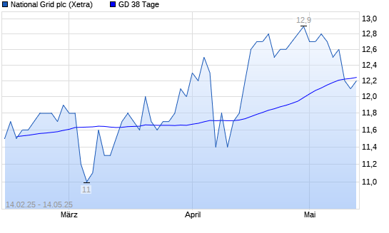 Mit dem Rücksetzer auf 12,20 EUR hat die National Grid-Aktie am 13.05.2025 die 38-Tage-Linie nach unten gekreuzt.