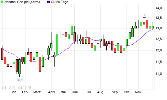 Mit dem Rücksetzer auf 12,90 EUR hat die National Grid-Aktie am 03.12.2025 die 50-Tage-Linie nach unten gekreuzt.