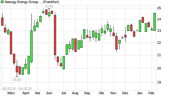 Mit dem Anstieg auf 23,92 EUR hat die Naturgy Energy Group-Aktie (ISIN ES0116870314) am 03.02.2025 ein neues 6-Monats-Hoch erreicht und damit den Kurs vom 03.01.2025 eingestellt.