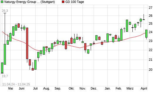 Mit dem Anstieg auf 24,34 EUR hat die Naturgy Energy Group-Aktie am 10.04.2025 die 100-Tage-Linie nach oben gekreuzt.