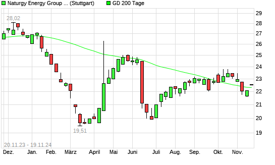 Mit dem Anstieg auf 22,52 EUR hat die Naturgy Energy Group-Aktie am 18.11.2024 die 200-Tage-Linie nach oben gekreuzt.