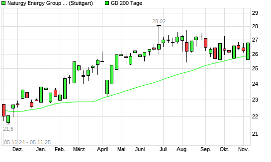 Mit dem Anstieg auf 26,18 EUR hat die Naturgy Energy Group-Aktie am 04.11.2025 die 200-Tage-Linie nach oben gekreuzt.