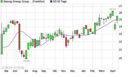 Mit dem Anstieg auf 25,30 EUR hat die Naturgy Energy Group-Aktie am 16.04.2025 die 50-Tage-Linie nach oben gekreuzt.
