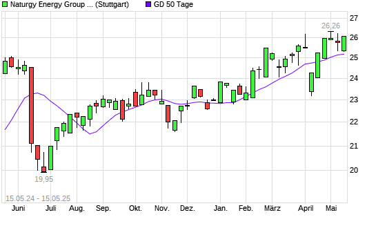 Mit dem Anstieg auf 25,48 EUR hat die Naturgy Energy Group-Aktie am 14.05.2025 die 50-Tage-Linie nach oben gekreuzt.