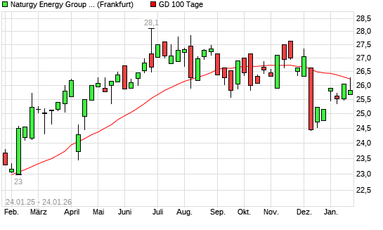 Mit dem Rücksetzer auf 25,82 EUR hat die Naturgy Energy Group-Aktie am 23.01.2026 die 100-Tage-Linie nach unten gekreuzt.