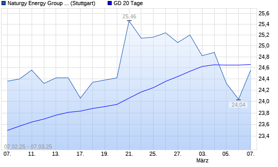 Mit dem Rücksetzer auf 24,32 EUR hat die Naturgy Energy Group-Aktie am 06.03.2025 die 20-Tage-Linie nach unten gekreuzt.
