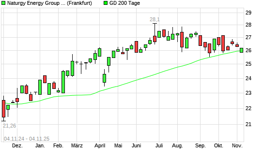 Mit dem Rücksetzer auf 25,88 EUR hat die Naturgy Energy Group-Aktie am 03.11.2025 die 200-Tage-Linie nach unten gekreuzt.