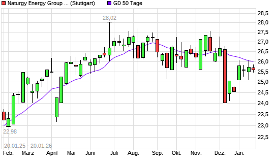 Mit dem Rücksetzer auf 25,66 EUR hat die Naturgy Energy Group-Aktie am 19.01.2026 die 50-Tage-Linie nach unten gekreuzt.