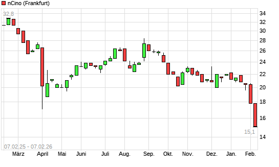 Mit dem Rücksetzer auf 15,10 EUR hat die Ncino-Aktie (ISIN US63947X1019) am 06.02.2026 ein neues All-Time-Low erreicht und damit den Kurs vom 04.02.2026 eingestellt.