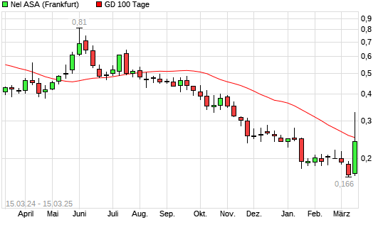 Mit dem Rücksetzer auf 0,24 EUR hat die Nel ASA-Aktie am 14.03.2025 die 100-Tage-Linie nach unten gekreuzt.