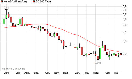Mit dem Rücksetzer auf 0,21 EUR hat die Nel ASA-Aktie am 14.05.2025 die 100-Tage-Linie nach unten gekreuzt.
