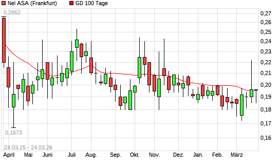 Mit dem Rücksetzer auf 0,19 EUR hat die Nel ASA-Aktie am 23.03.2026 die 100-Tage-Linie nach unten gekreuzt.