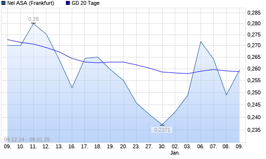 Mit dem Rücksetzer auf 0,25 EUR hat die Nel ASA-Aktie am 08.01.2025 die 20-Tage-Linie nach unten gekreuzt.