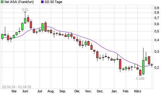 Mit dem Rücksetzer auf 0,21 EUR hat die Nel ASA-Aktie am 31.03.2025 die 50-Tage-Linie nach unten gekreuzt.