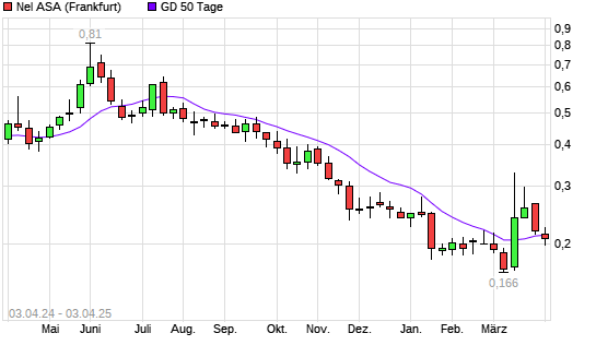 Mit dem Rücksetzer auf 0,21 EUR hat die Nel ASA-Aktie am 02.04.2025 die 50-Tage-Linie nach unten gekreuzt.