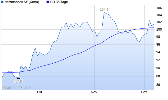 Mit dem Rücksetzer auf 99,75 EUR hat die Nemetschek-Aktie am 06.12.2024 die 38-Tage-Linie nach unten gekreuzt.
