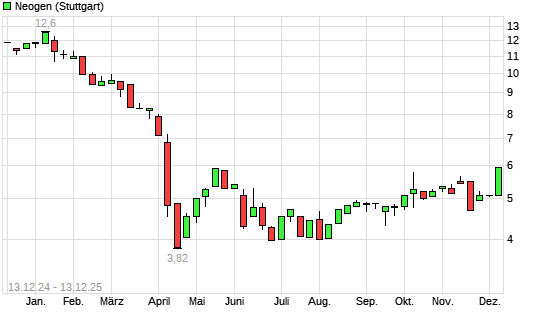 Mit dem Anstieg auf 5,95 EUR hat die Neogen-Aktie (ISIN US6404911066) am 12.12.2025 ein neues 6-Monats-Hoch erreicht und damit den Kurs vom 11.12.2025 eingestellt.