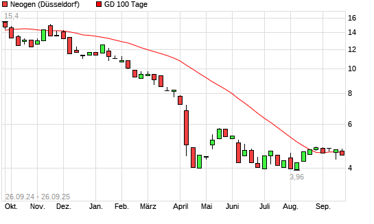 Mit dem Rücksetzer auf 4,60 EUR hat die Neogen-Aktie am 25.09.2025 die 100-Tage-Linie nach unten gekreuzt.