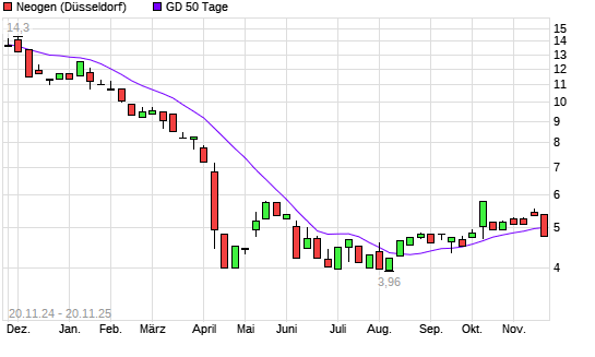 Mit dem Rücksetzer auf 5,05 EUR hat die Neogen-Aktie am 19.11.2025 die 50-Tage-Linie nach unten gekreuzt.