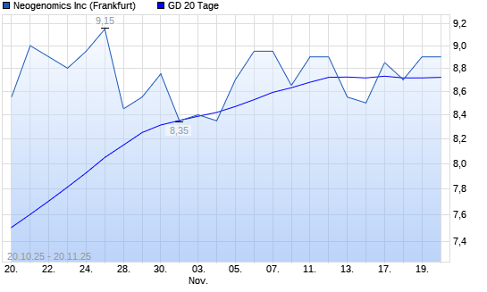 Mit dem Anstieg auf 8,90 EUR hat die Neogenomics-Aktie am 19.11.2025 die 20-Tage-Linie nach oben gekreuzt.