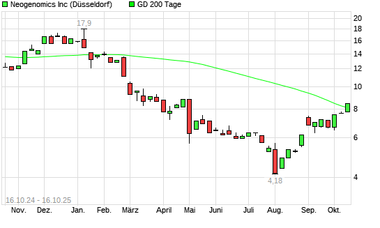 Mit dem Anstieg auf 8,05 EUR hat die Neogenomics-Aktie am 15.10.2025 die 200-Tage-Linie nach oben gekreuzt.