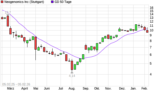 Mit dem Anstieg auf 10,50 EUR hat die Neogenomics-Aktie am 04.02.2026 die 50-Tage-Linie nach oben gekreuzt.