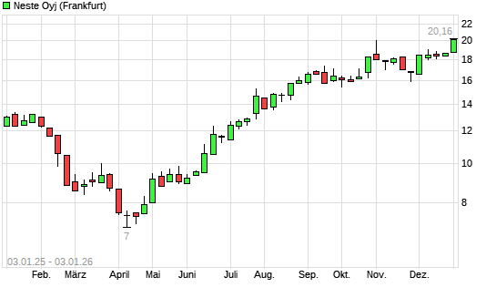 Mit dem Anstieg auf 20,16 EUR hat die Neste OYJ-Aktie (ISIN FI0009013296) am 02.01.2026 ein neues 12-Monats-Hoch erreicht und damit den Kurs vom 30.12.2025 eingestellt.