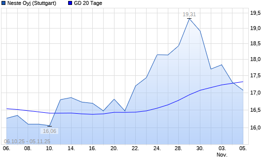 Mit dem Rücksetzer auf 16,99 EUR hat die Neste OYJ-Aktie am 04.11.2025 die 20-Tage-Linie nach unten gekreuzt.