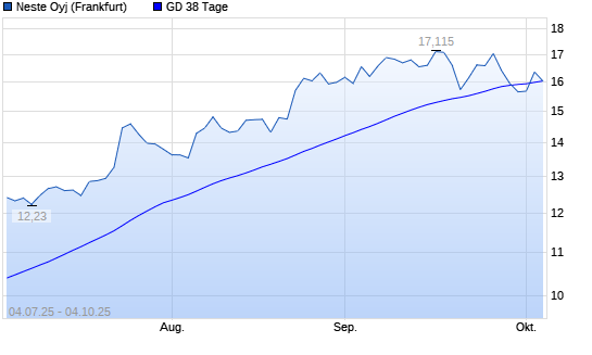 Mit dem Rücksetzer auf 16,04 EUR hat die Neste OYJ-Aktie am 03.10.2025 die 38-Tage-Linie nach unten gekreuzt.